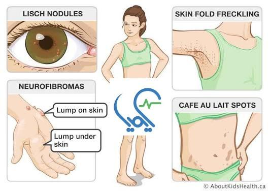 • رشد توده‌های نرم زیر پوست یا روی عصب‌های بدن (نوروفیبروم‌ها).